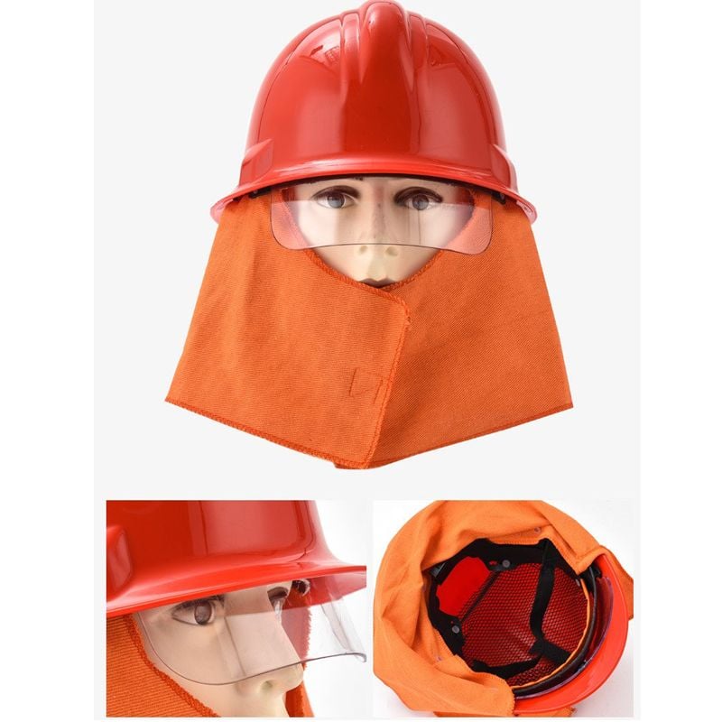 Mũ chữa cháy: Làm bằng nhựa ABS chống va đập, có kính che mặt bằng nhựa PC trong suốt để cản khói và hơi nóng bảo vệ vùng mặt.